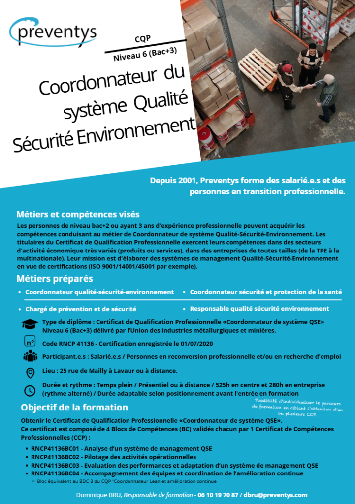 Coordonnateur de système Qualité, Sécurité, Environnement