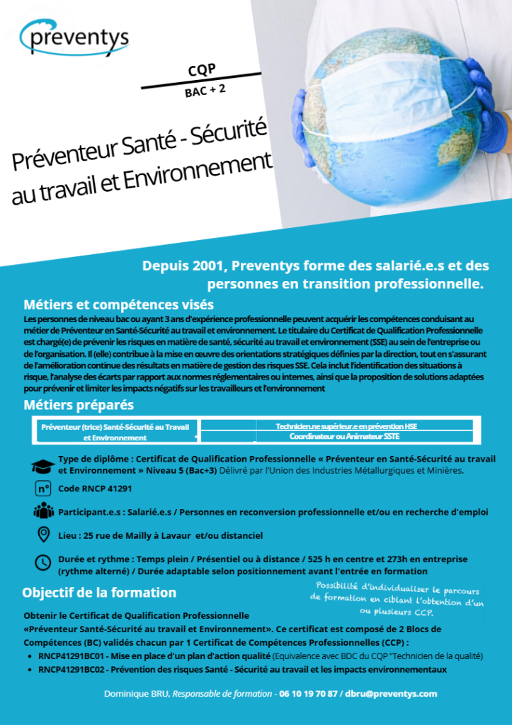 CQP Préventeur Santé Sécurité au travail et Environnement