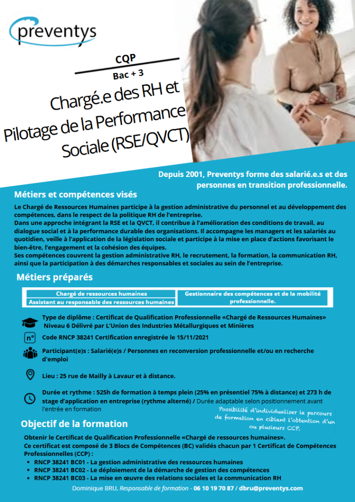 Chargé des RH et pilotage de la performance sociale (RSE/QVCT)